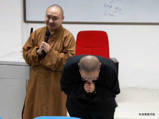 2012年4月18日晚,来我院参访的杭州佛学院日本佛教研究室研究室肖平教授应隆藏法师之邀和师生们进行互动交流。杭州佛学院参访团、我院有关领导、老师,2011、2012级学僧及居士培训班全体参学居士参加了互动交流。讲座深入浅出,探幽阐微,彰显了语言学(声明)在佛学学习和研究中的重要地位和意义。活动由杭州佛学院招生办公室主任心悟法师客串主持。