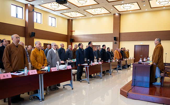 我院将以学习此次会议精神为契机,扎实推进各项工作:一是深化思想认识,持续组织开展形式多样的学习活动,深刻领会会议精神实质,统一思想,凝聚共识,确保学院发展始终在党和政府的领导下,沿着正确方向前进;二是聚焦人才培养,进一步完善人才培养模式,突出爱国爱教、守法持戒的教育,强化修行实践与社会实践,提升学员的综合能力;三是加强学术研究,鼓励和支持符合佛教中国化方向的学术研究与经典阐释,推动佛教文化与中华优秀传统文化深度融合;四是优化内部治理,以会议精神为指导,进一步健全学院规章制度,加强师资队伍建设,营造清净和谐、学风严谨的修学环境。以“学法规、守戒律、重修为、树形象”教育活动为抓手,全面从严治教,切实解决教风建设存在的突出问题。